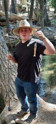 Early August saw my son in law David and two grandsons Josh and Gavin and me heading to the Sierras for some stream trout fishing. We use the classic Sierra stream rig: a limber fly rod with an automatic fly reel and 4 lb. monofilament with nightcrawlers, or grasshoppers—when we can catch them. That set up allows us to reach all of a stream, with brush and trees at the water’s edge, without spooking the wild trout.
